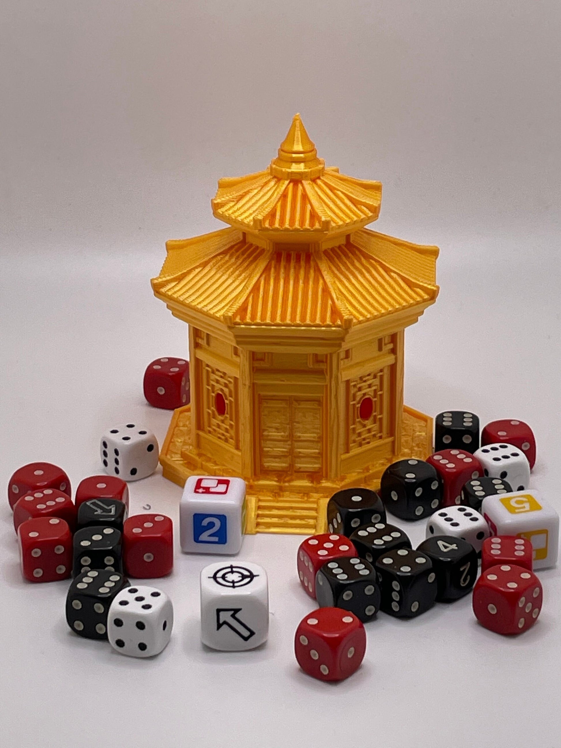 Looking to add to your Tabletop Collection? The Chinshi Dice Box is the perfect addition for any seasoned player, Dungeon Master or fan of the game! These dice vaults are 3D printed as a highly detailed, unique storage solution for your dice that will add to the Decor of your games.