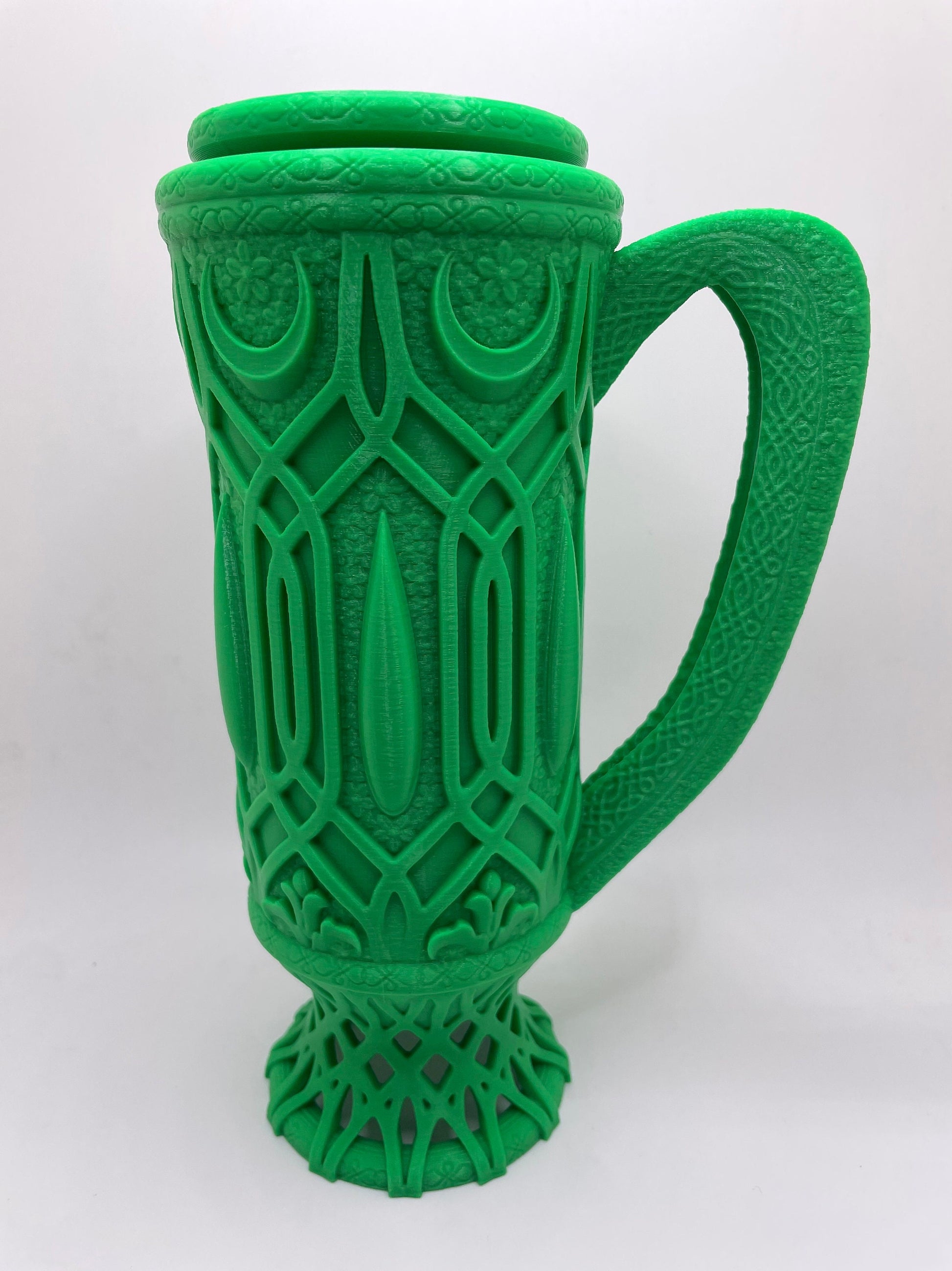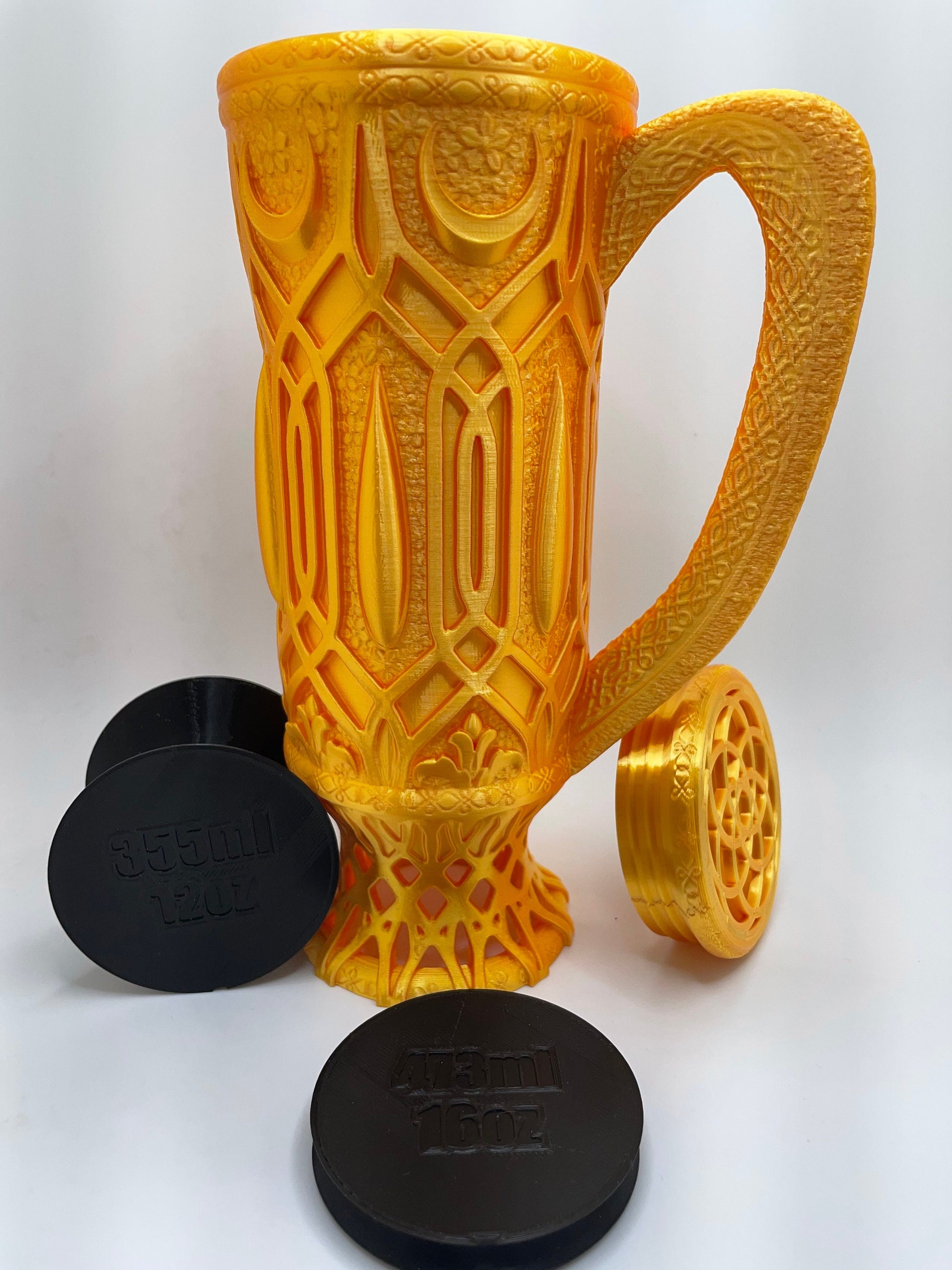 This is The Elf from the Mythic Mugs Collection designed by Ars Moriendi 3D. Mythic Mugs are great for gaming events, Cosplay for Renn Faire or conventions, or any time you want to add a touch of fantasy to the mundane. Mythic mugs come with free 12oz and 16oz can inserts, colors of inserts will vary. Mythic mugs make great dice vaults and rollers as well!